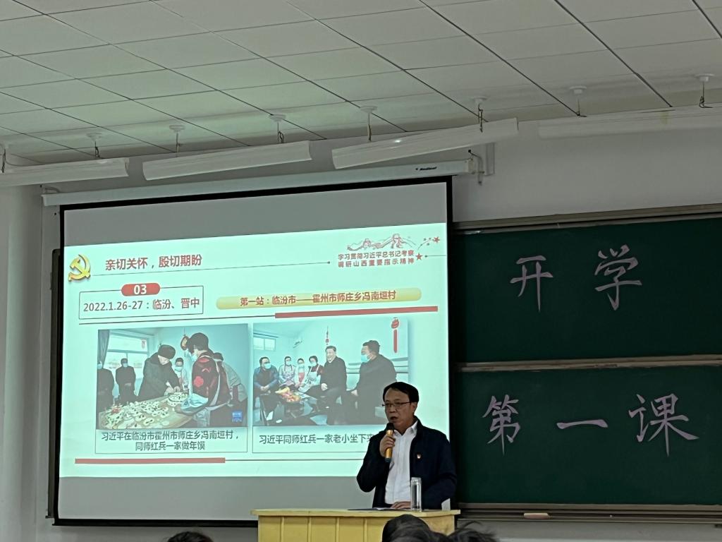 “重建住房质量好不好、年货置办齐了没有、还有什么困难,家庭收入多少、生活怎么样……温暖瞬间,殷切嘱托,无不彰显着习近平总书记情系人民、深爱人民、扎根人民的领袖风范。”赵随民深情回顾了习近平总书记考察调研山西的那些暖心画面、话语,结合自己的思考和个人的亲身经历给同学们上了一堂生动的“开学第一课”。