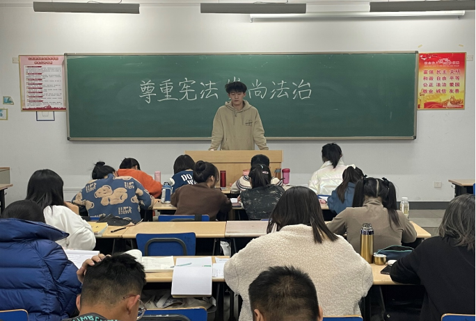 学院组织学生开展了丰富多彩的法制宣传教育系列活动。各班级召开主题班会,认真学习了宪法相关内容,观看了教育部的国家宪法日主题教育视频,一同朗读《中华人民共和国宪法》中的部分章节,一起唱起《宪法伴我成长》,并观看了第六届全国学生“学宪法讲宪法”比赛获奖选手展演,还在学生中开展法制手抄报等竞赛活动,进一步培育宪法精神,体会学习宪法的必要性与意义。值得一提的是,12月9日,学院还特邀榆次高校分局派出所孟个林警官为我院蕴华校区学生做了法制讲座,对学生进行了生动的法制教育。