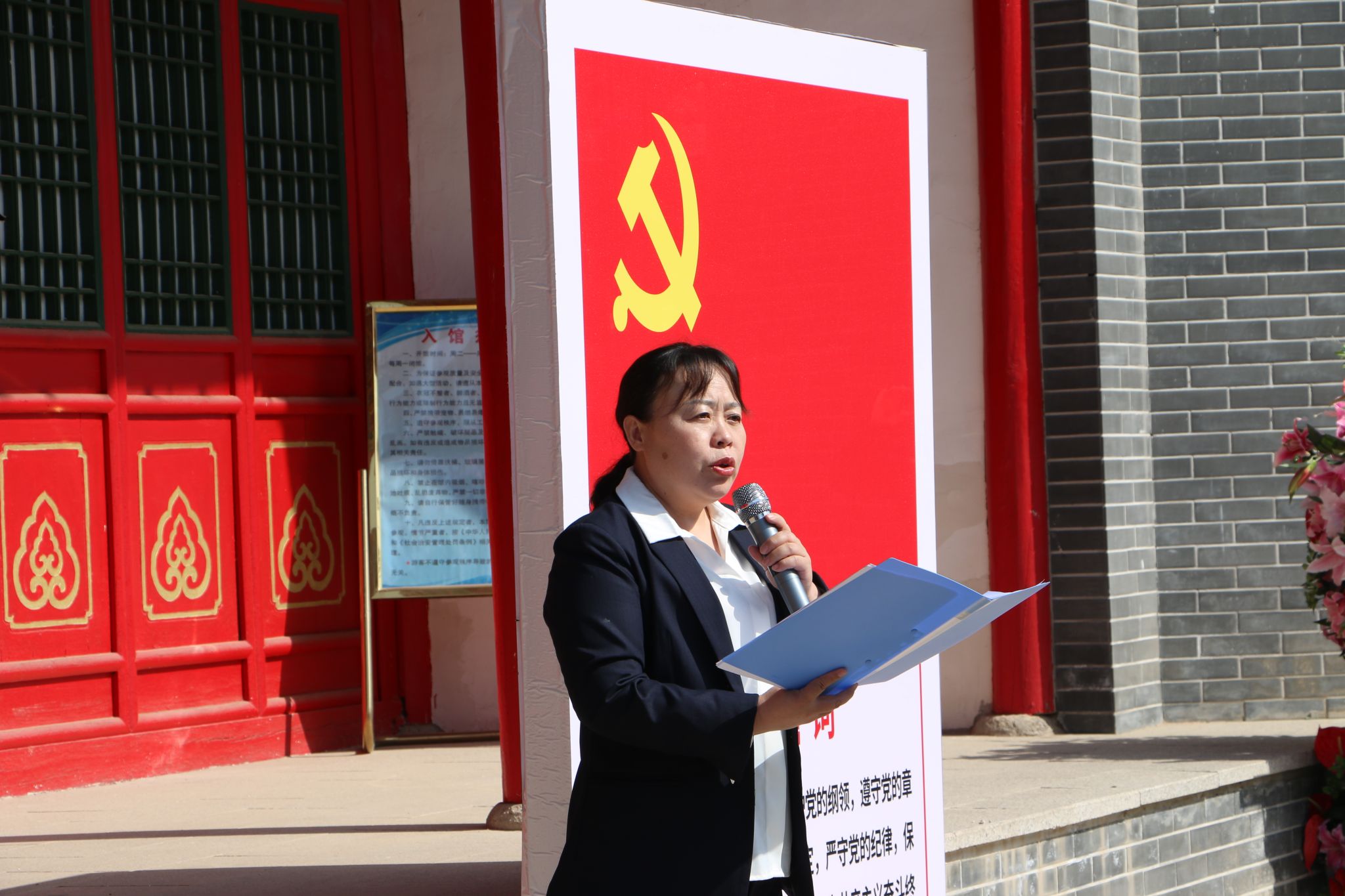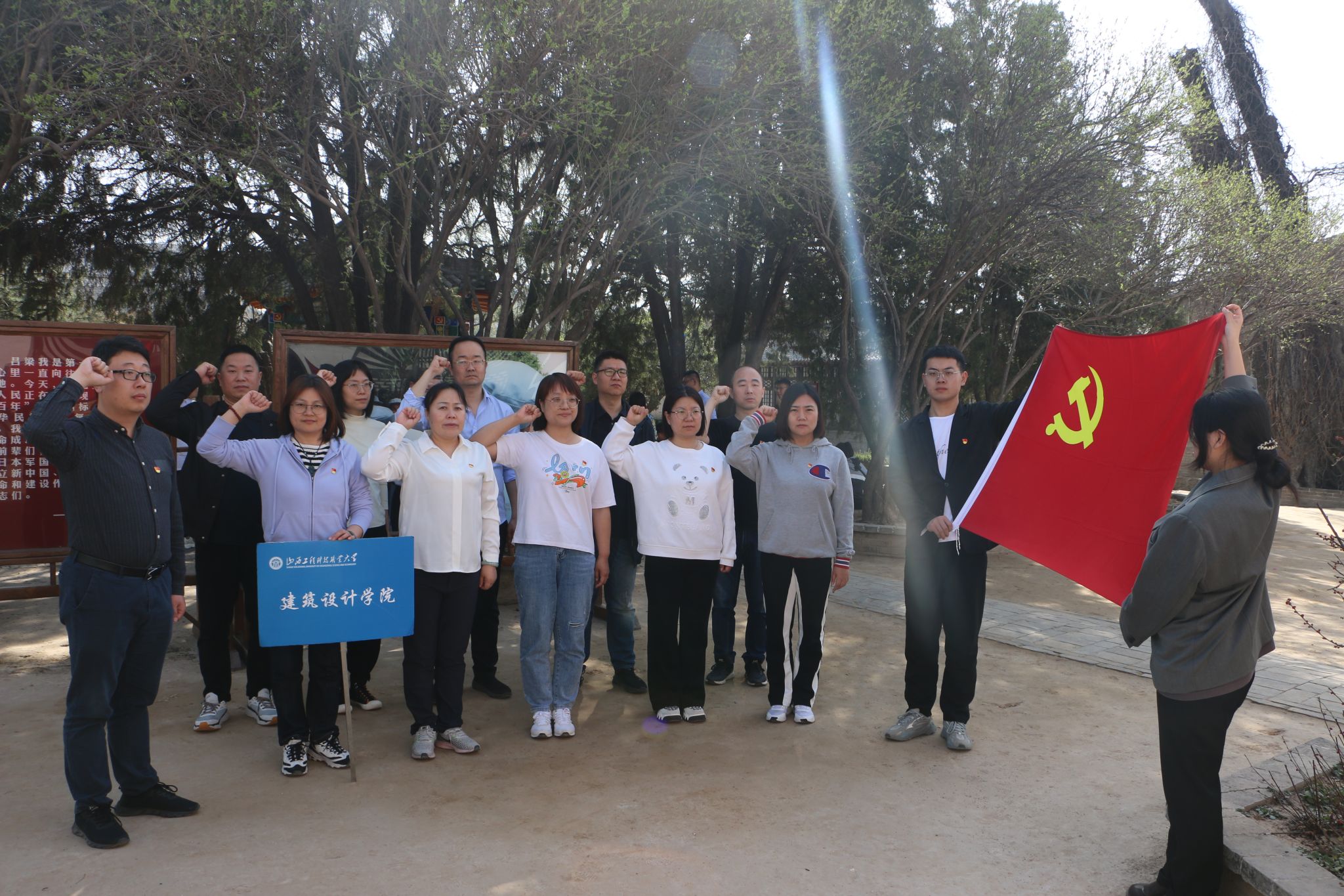 参观过后,院团委负责人李霖带领全体党员同志在晋绥军区司令部旧址院内重温入党誓词。面对鲜红的党旗,全体党员高举右拳庄严宣誓。
