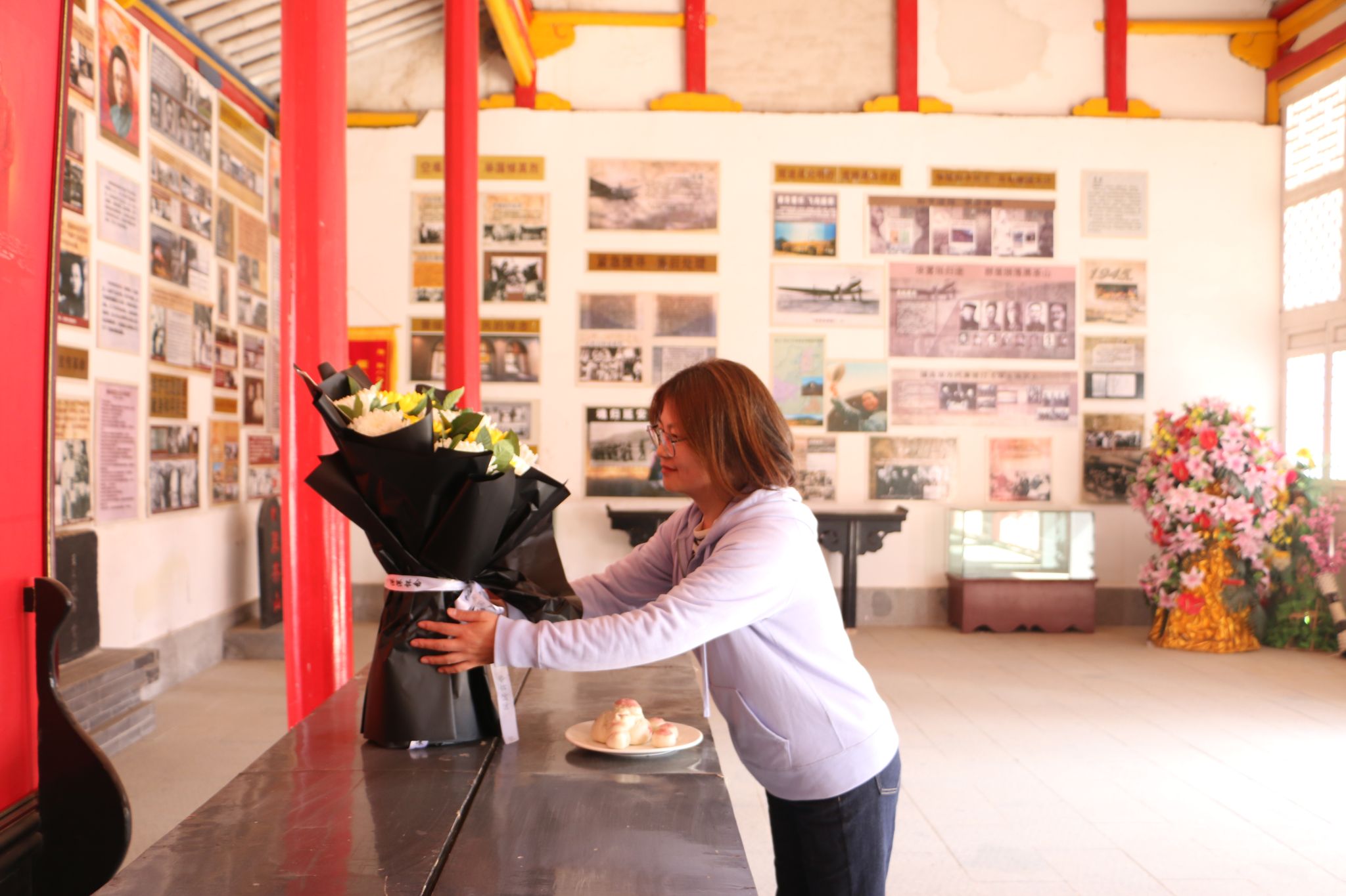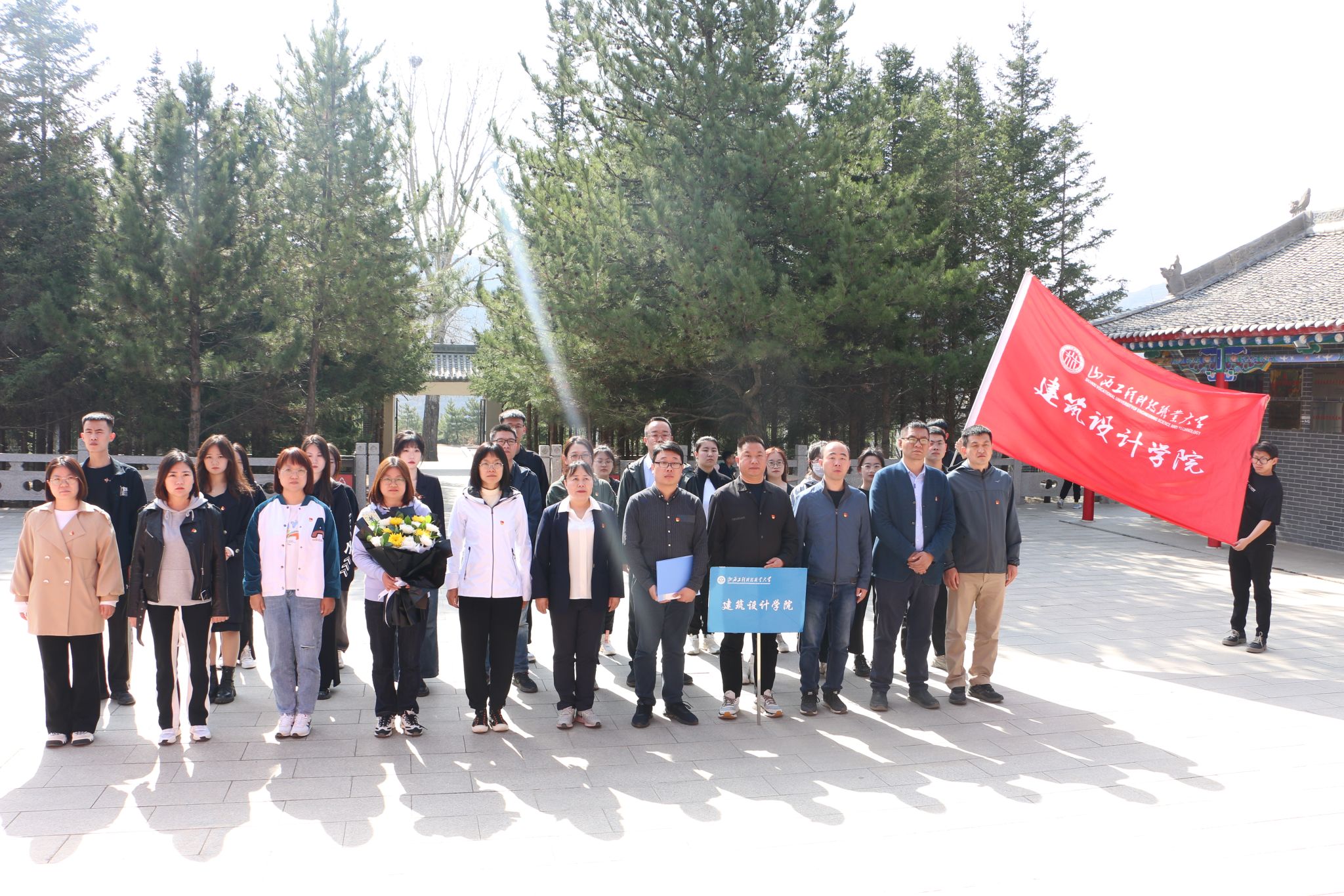 上午,建筑设计学院领导、辅导员及学生代表抵达兴县黑茶山“四八”烈士纪念馆,在工作人员尹拯山的带领下,一行人在烈士祠堂前列队肃立,鞠躬致敬。院党团办负责人刘晓春作为代表敬献花束。