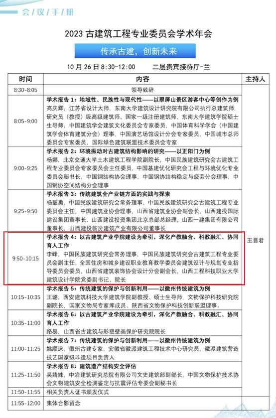 2023年10月24—27日,建筑设计学院院长李峰赴青岛参加中国民族建筑研究会学术年会,受邀在2023古建筑工程专业委员会学术年会上做了题为“以古建筑产业学院建设为牵引,深化产教融合、科教融汇、协同育人工作”的学术报告。会议期间聆听了与会专家们系列学术报告,感受行业前沿动态,关注最新学术研究成果,研讨文物保护热点、难点问题,提升民族传统建筑的保护、利用和科研水平。