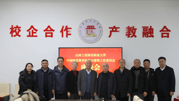出席会议的还有副校长李锦元、校党政办公室主任陈高峰、教务部部长王涛、产教融合中心副主任任小龙(主持工作)、山西一建集团古建筑研究院院长晋朝锋、建筑设计学院院长李峰、副书记马丽、副院长王晓华,古建筑产业学院副院长金薇以及学院教师代表。